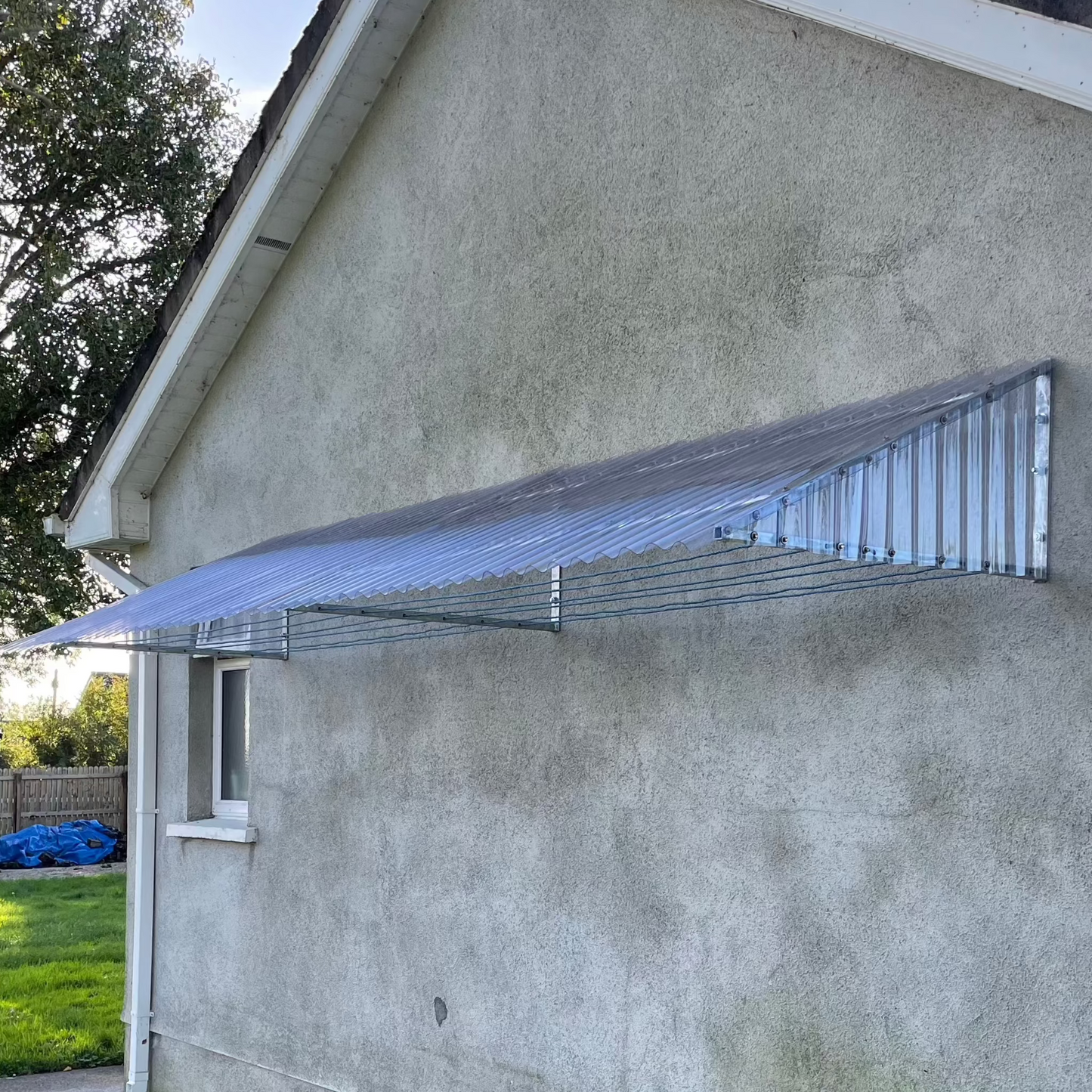 Each 12ft Canopy Clothesline includes a heavy-duty galvanised steel frame, sheeting pre-cut to size, a pre-fitted washing line capable of handling multiple large loads, and all the necessary fixings for secure installation. Pegs are available separately.