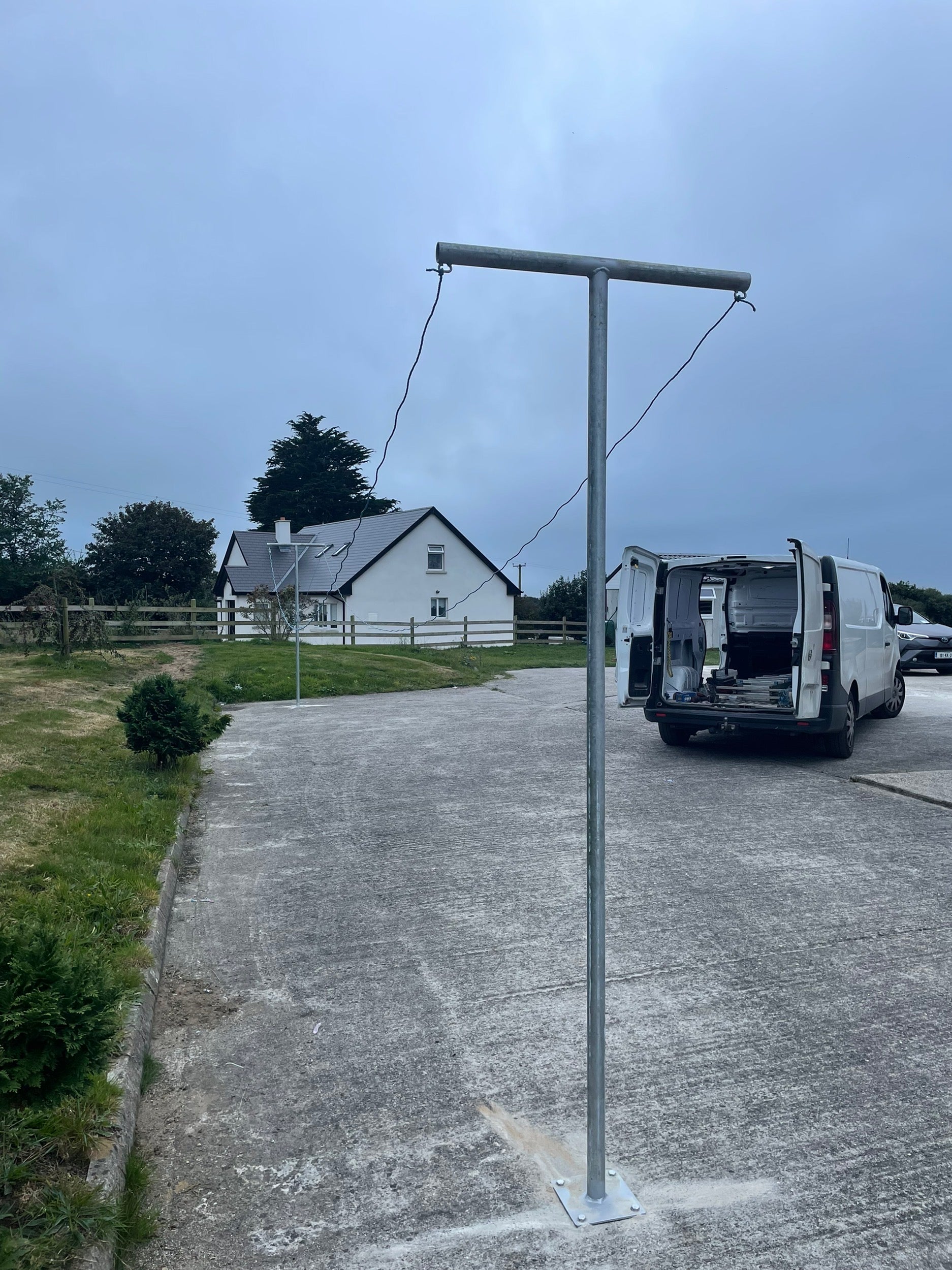 2 Full-Height Galvanised T-Bar Poles with Pre-Welded Base Plates – 10ft poles give 8ft drying height once installed